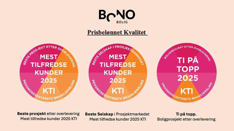 . Det er Prognosesenteret som deler ut prisen, og som vurderer kundetilfredshet blant et 50-tall av landets største boligutviklere. På en fornøydhetsskala fra 0-100 målt for alle kunder, scorer BoNo Bolig 93 poeng. Det er blant det høyeste som er målt noen gang.